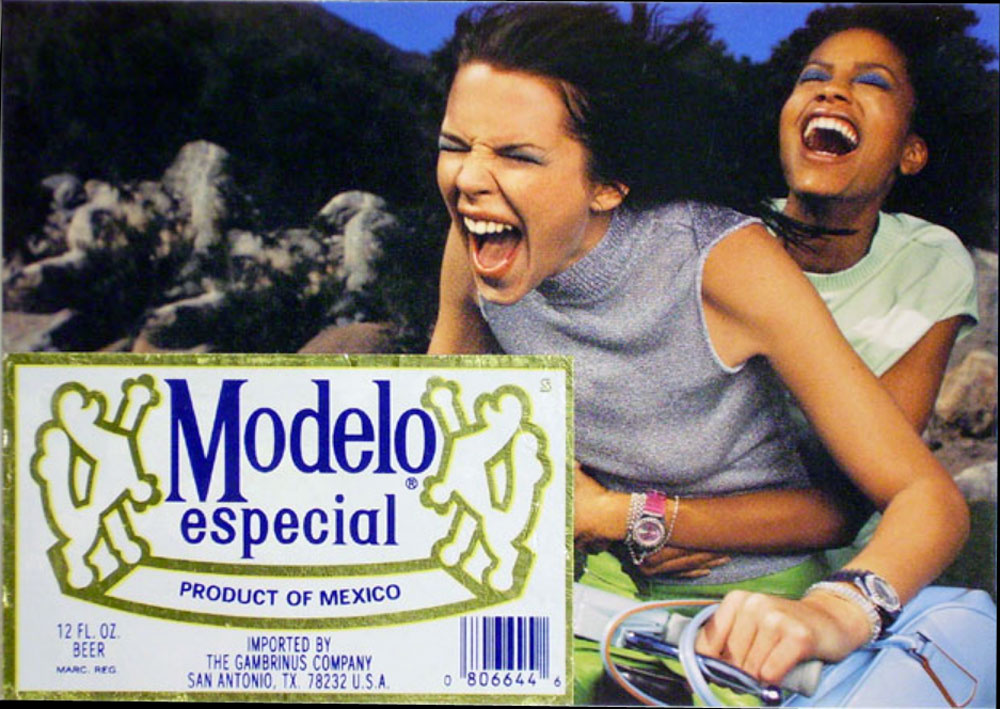 works using beverage labels to obscure logos, and other information, on free advertising postcards