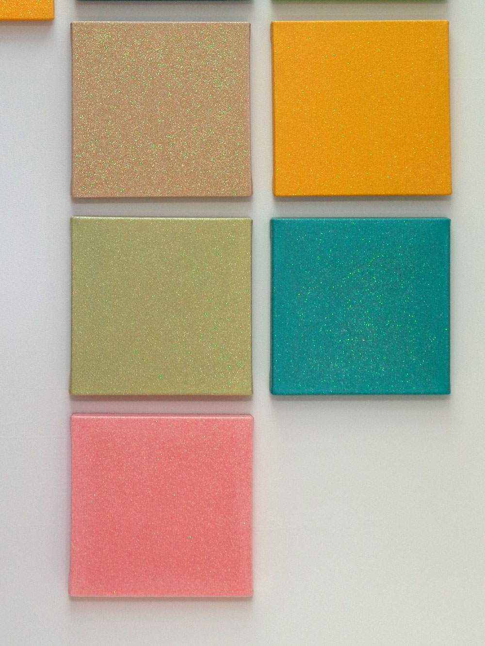 S, XS (series of 18), detail 2022–23 PVA, resin assisted PVA, pigment, glitter on canvas S (1–9): 30 x 30 x 4 cm XS (1–9): 20 x 20 x 4 cm