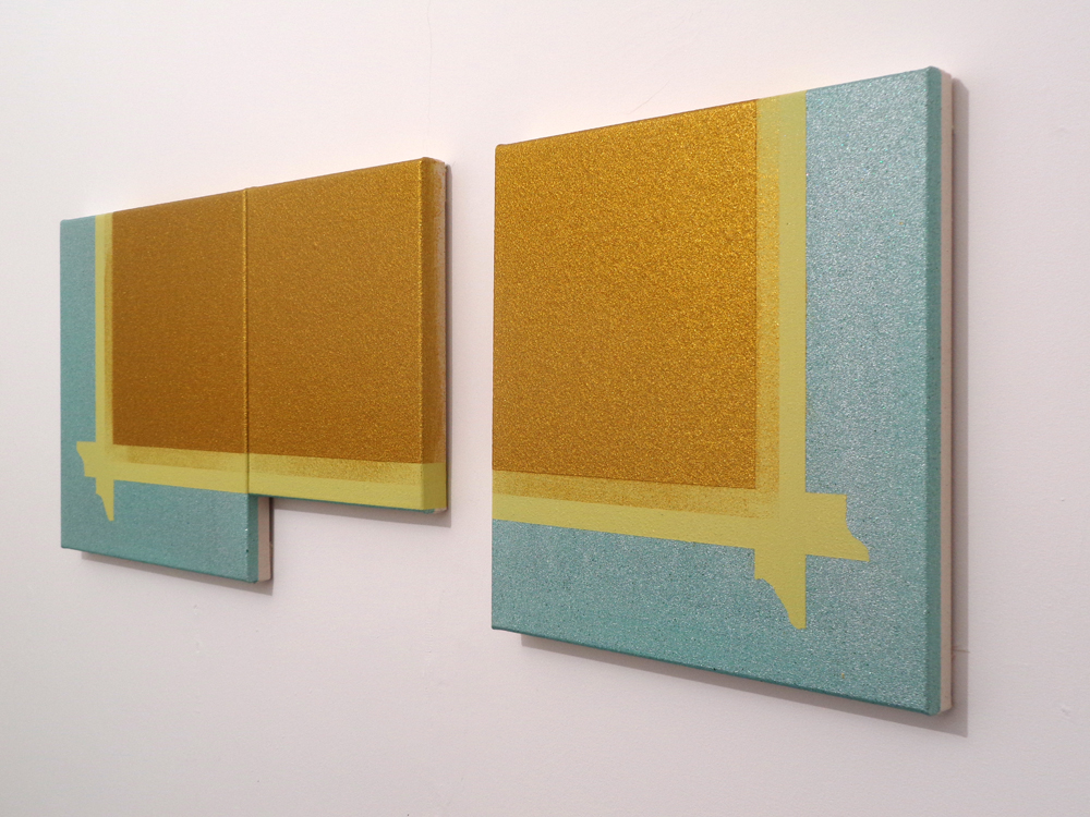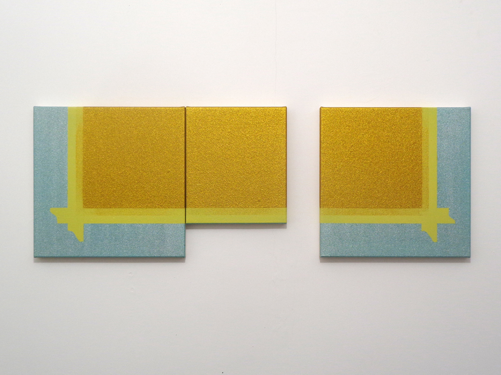 S, XS (series of 18) 2022–23 PVA, resin assisted PVA, pigment, glitter on canvas S (1–9): 30 x 30 x 4 cm XS (1–9): 20 x 20 x 4 cm